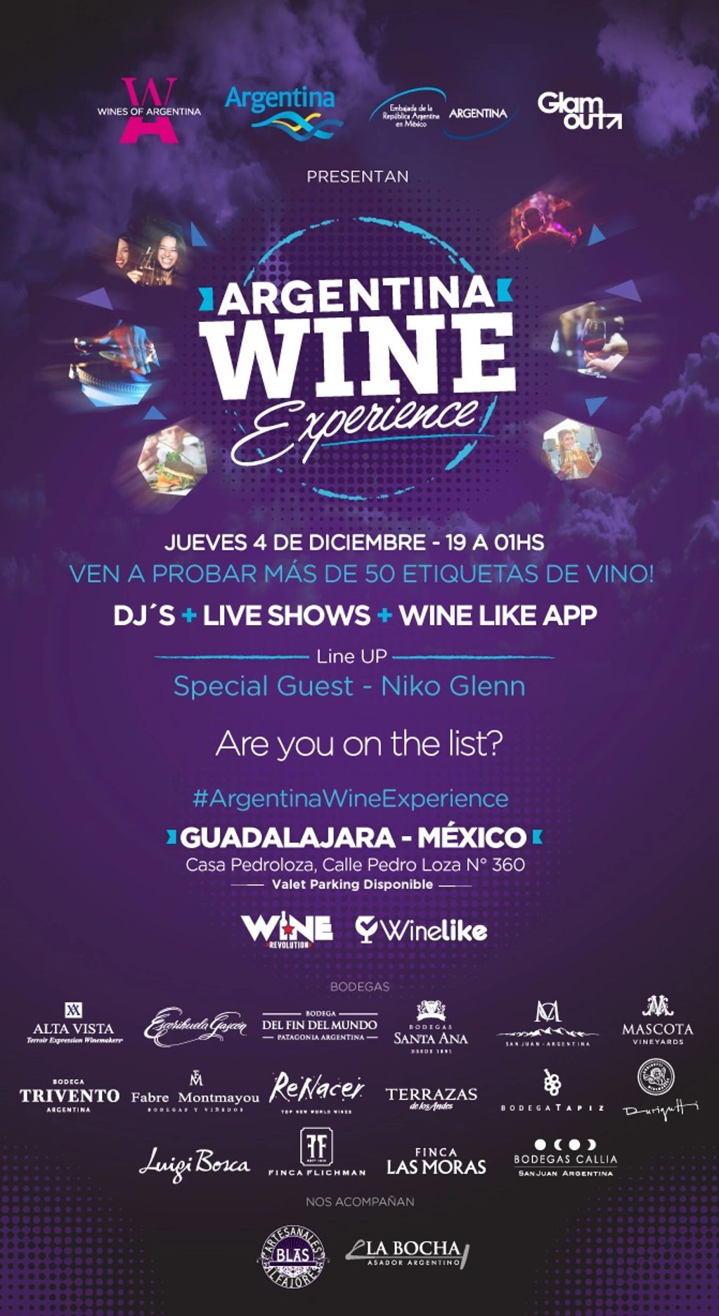 Celebración por el Día Mundial del Malbec, una iniciativa de Wines of Argentina que se realiza en más de 70 ciudades de 50 paises. Degustación de Malbec + Finger food + Liveshows + WineLike App